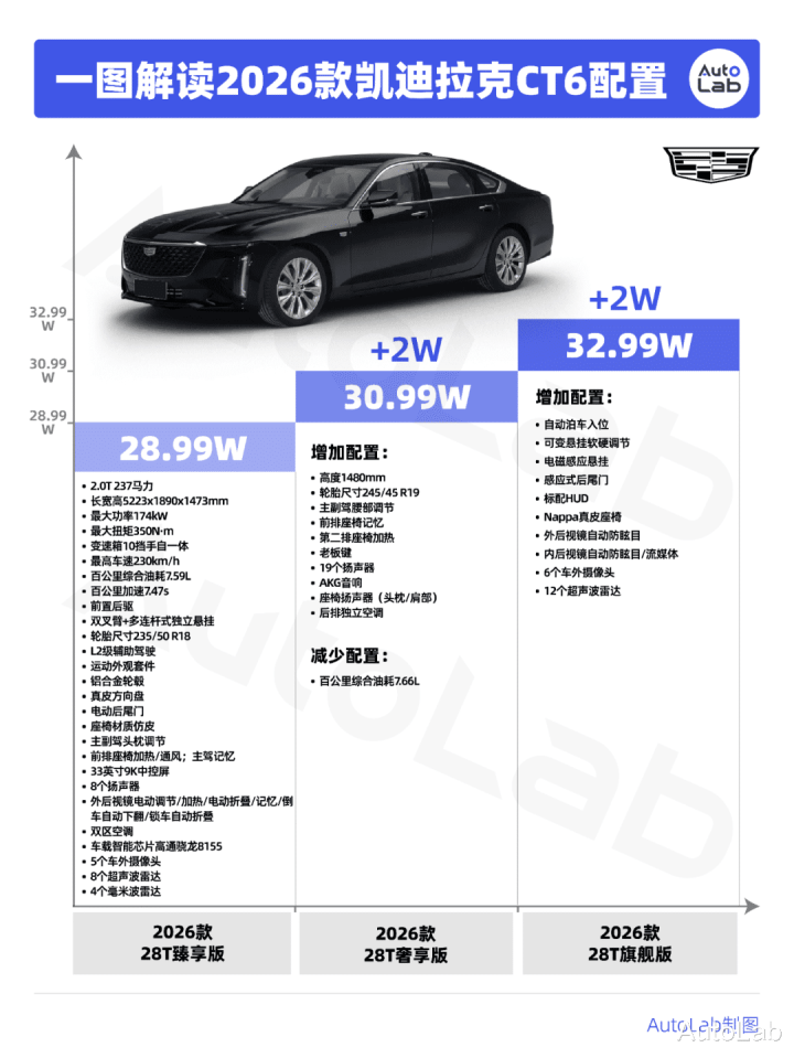 2026款CT6继续延续了通用的“一口价”模式,实际起售价直接“砍”了近10万,来到了28.99-32.99万元。